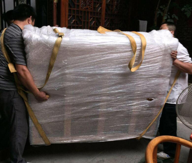 如果選擇運(yùn)輸?shù)能?chē)輛是汽車(chē),那么需要四五個(gè)人來(lái)運(yùn)載。一般立式鋼琴的重心不是在中間,而是在后面附近,所以拿著它時(shí),站在鋼琴后面的人應(yīng)該更多,而站在鋼琴前面的人應(yīng)該相對(duì)較少。當(dāng)準(zhǔn)備上車(chē)時(shí),三個(gè)人在前面,兩個(gè)人在后面,后面的人舉起鋼琴來(lái)支撐它。前面的人抬起鋼琴的底部,慢慢地把它放到車(chē)上。然后一個(gè)人上了車(chē),把鋼琴拉到行李箱上,后面的人慢慢地推鋼琴,這樣鋼琴就可以被移到車(chē)上。