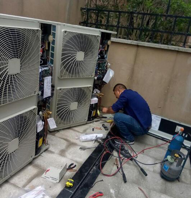 4.連電源線及信號(hào)線:拆去室外機(jī)的電氣盒蓋,根據(jù)室內(nèi)機(jī)接線盒及室外機(jī)接線盒中配對(duì)的編號(hào),連接好電線。安裝成功以后還要進(jìn)行測(cè)試,確保空調(diào)沒有問題。